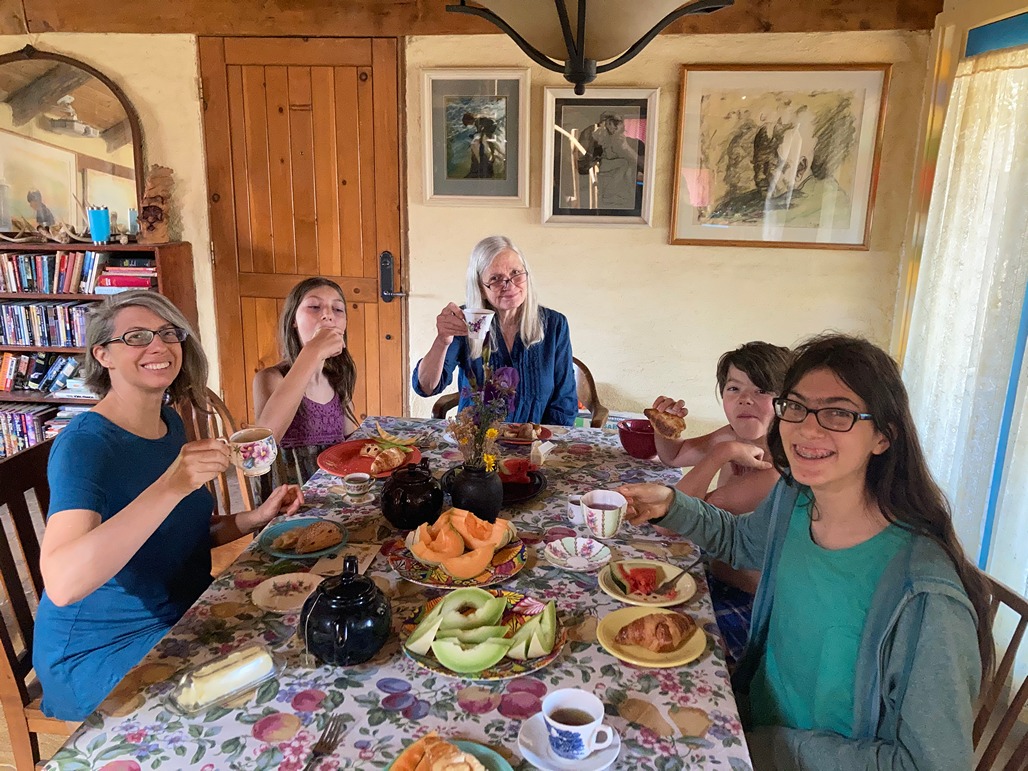 We walk through a park and ask a stranger to take a photo of us in front of a totem pole, the only one I have that we’re all three in together. It’s a pretty touristy shot, but I had to have at least one.