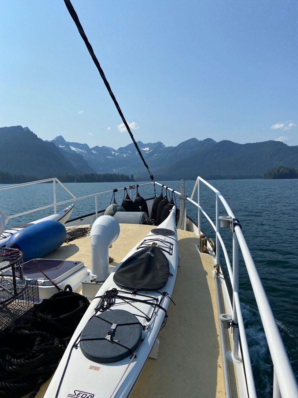 Pete got up with me, heaved my massive suitcase up the stairs to the wheelhouse and over the ship’s side, then helped me down. We waited for the cab together and said our goodbyes. It’s really a bittersweet moment! I will miss Peter and Sue. I will miss Alaska. But I have in my “back pocket” all these unforgettable memories.
