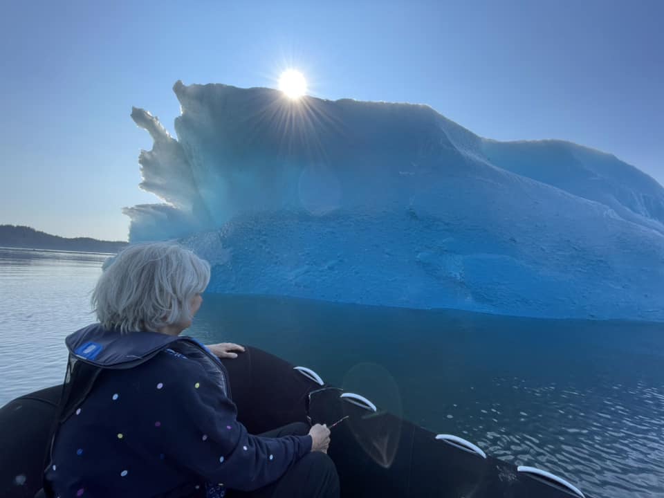 Sue asked me what my favorite memory was from this trip, and I see myself in the front of the dinghy again, reaching for the ancient bergie bit ice, breaking off a soft chunk of (at least) thousand-year-old ice. That pristine taste, untouched and perfect like this wilderness state I have fallen in love with.